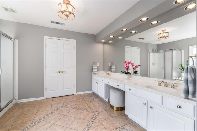 The main suite is a private retreat with double vanities, soaking tub, separate shower, and a massive walk-in closet. Upstairs, three additional bedrooms and two bathrooms are thoughtfully designed for family living.