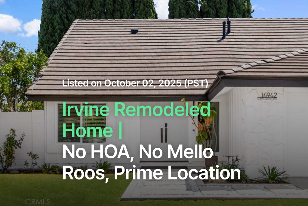 - Buyers seeking a remodeled Irvine home with no HOA or Mello Roos