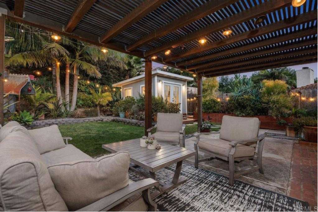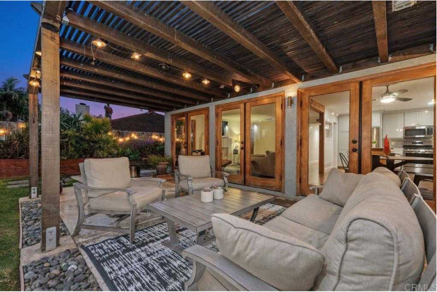 The beautifully designed backyard patio is perfect for hosting, relaxing, or enjoying weekend brunch under the California sun.