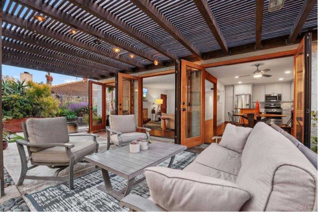 The beautifully designed backyard patio is perfect for hosting, relaxing, or enjoying weekend brunch under the California sun.