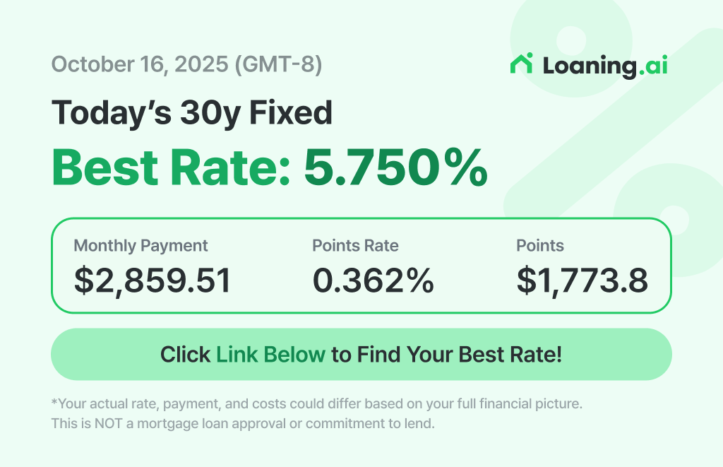 📉 Today’s Mortgage Rates (As of 10/16/2025, PST)