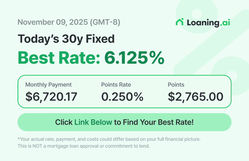 📉 Today’s Mortgage Rates (As of 11/09/2025, PST)