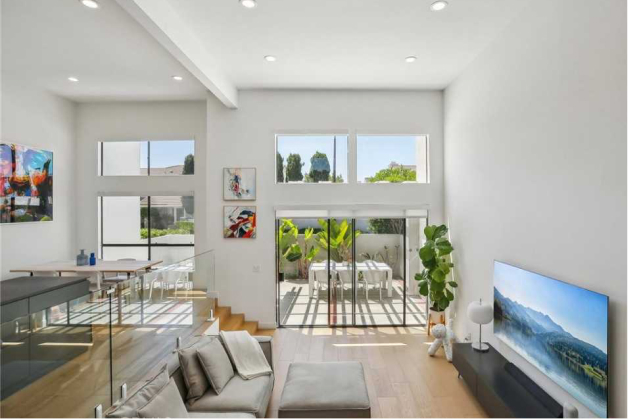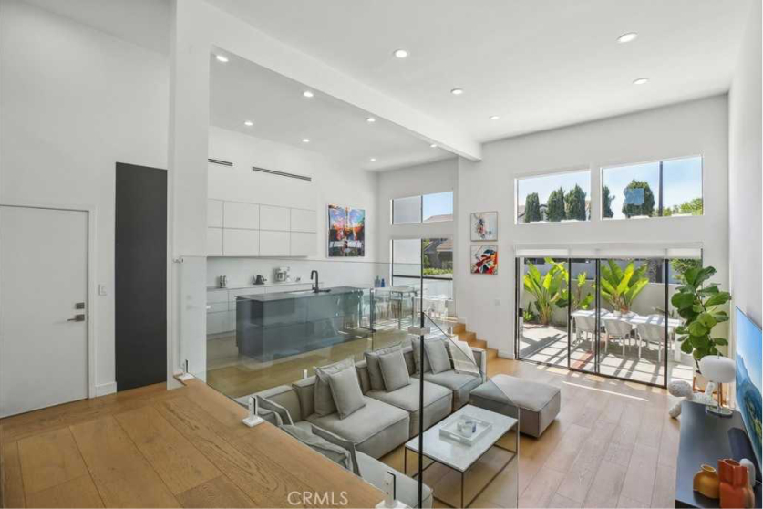 The main living area is filled with natural light and features high ceilings that enhance the open and airy ambiance.