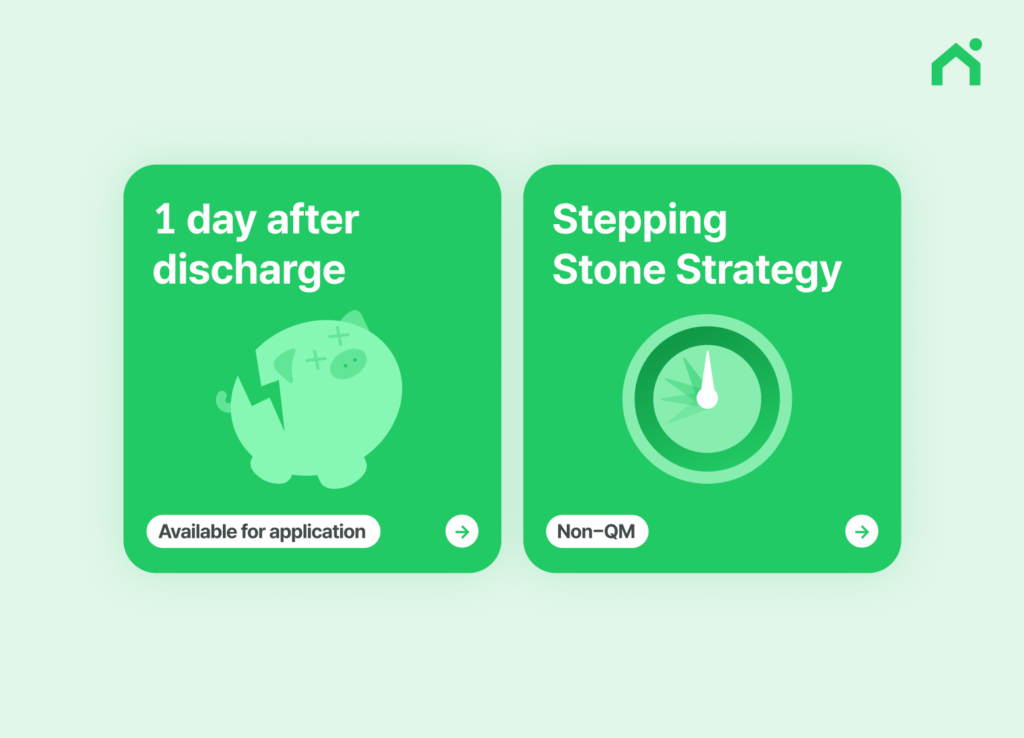 Some Non-QM programs allow applications as early as one day after discharge. Naturally, due to the associated risk, interest rates are typically higher than conventional mortgages, and they may require more equity (LTV ratio around 70-80%). However, if you need to put out the fire and save your home, this becomes the most realistic alternative.
