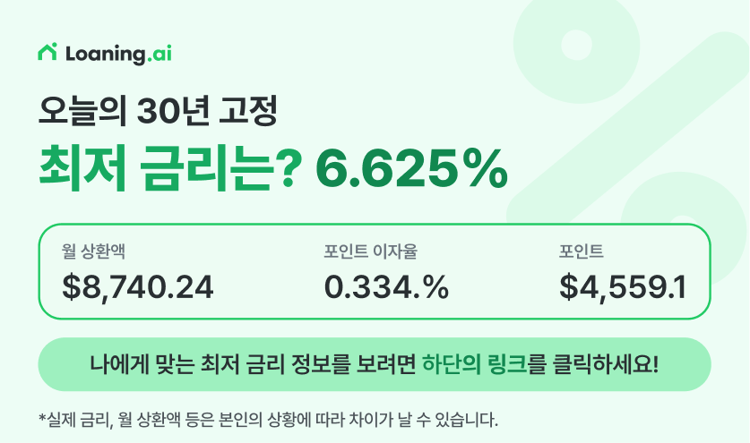 📩 Loaning.ai는 미국 부동산 시장 전문가들과 함께 최적의 주택을 찾고, 맞춤형 모기지 대출 컨설팅을 제공합니다.
