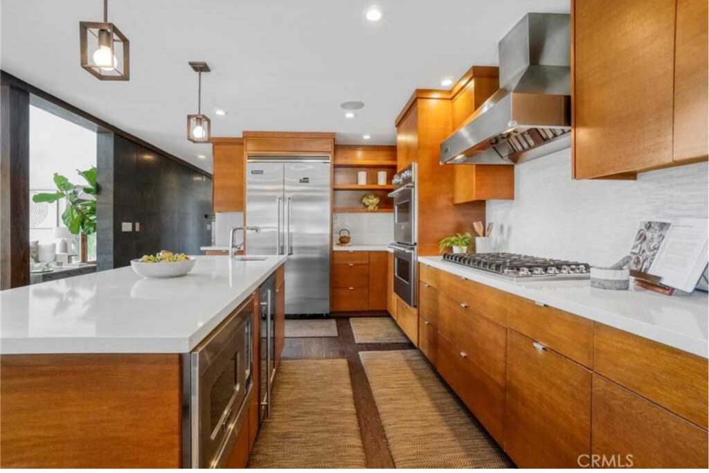 주방은 프로페셔널 Viking Pro 가전, 쿼츠 조리대, 원목 캐비닛이 완비되어 요리와 엔터테인먼트에 최적화되어 있습니다.