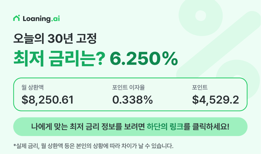 📩 Loaning.ai는 미국 부동산 시장 전문가들과 함께 최적의 주택을 찾고, 맞춤형 모기지 대출 컨설팅을 제공합니다.
