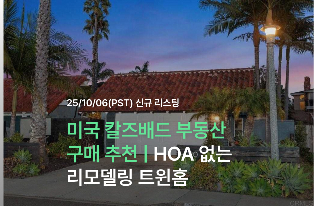 - 실거주와 투자 두 가지를 모두 고려한 미국 칼즈배드 부동산 구매를 계획하는 분