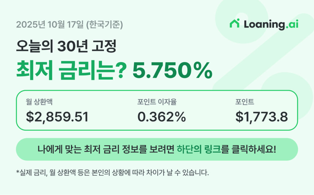 📉 오늘의 모기지 최저 금리 (25/10/17의 한국 기준)
