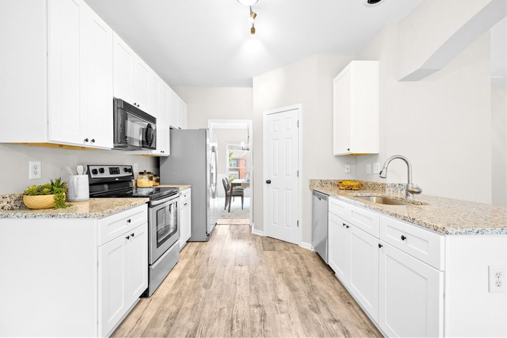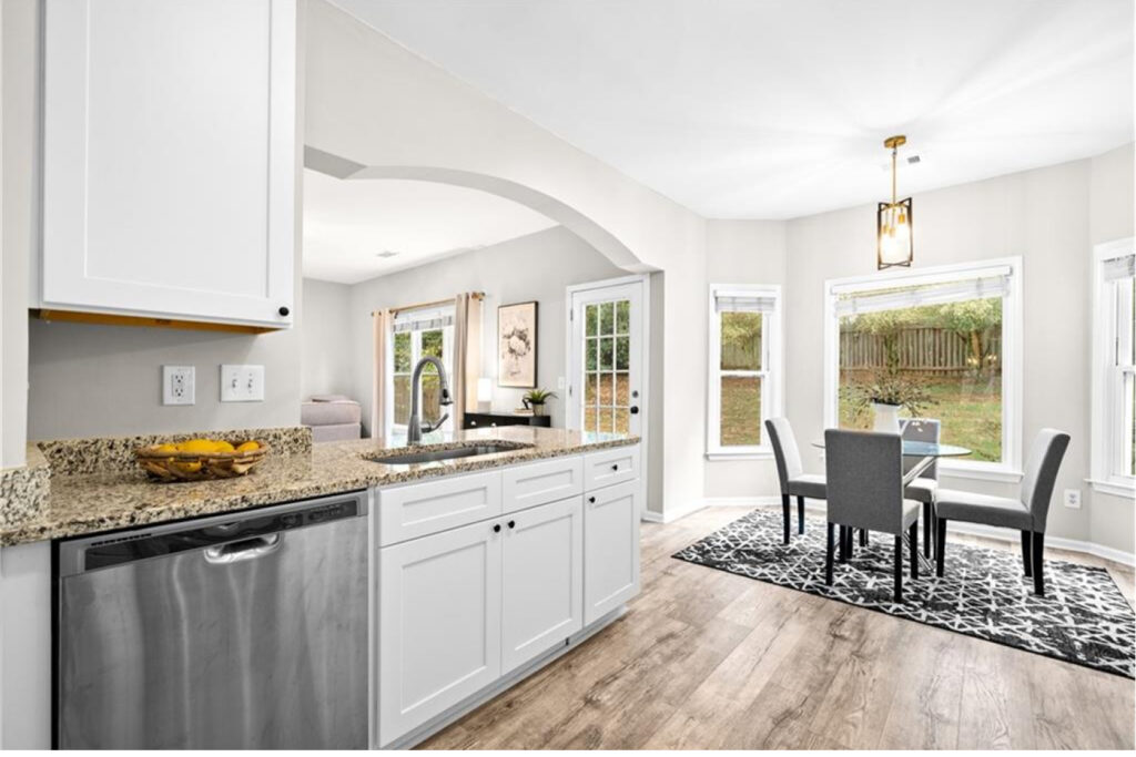 현관을 들어서면 따뜻한 톤의 신형 LVP 바닥재와 깔끔하게 도색된 실내가 반겨줍니다. 리노베이션된 주방은, 최신 캐비닛과 그라나이트 조리대, 식기세척기, 실용적인 레이아웃으로 요리와 손님 접대에 안성맞춤입니다. 요리와 손님 접대를 모두 즐길 수 있는 효율적인 구조로, 실내 조명과 자연광이 조화를 이루는 밝은 분위기가 특징입니다.