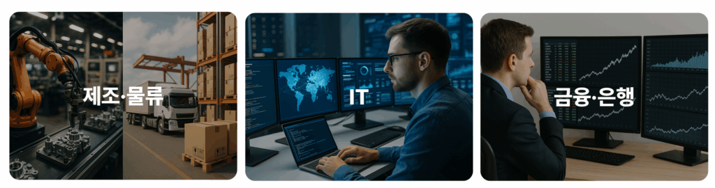 - 제조·자동차·에너지: 현대자동차·기아, 현대모비스, LG에너지솔루션, 전자·부품 관련 계열사 등