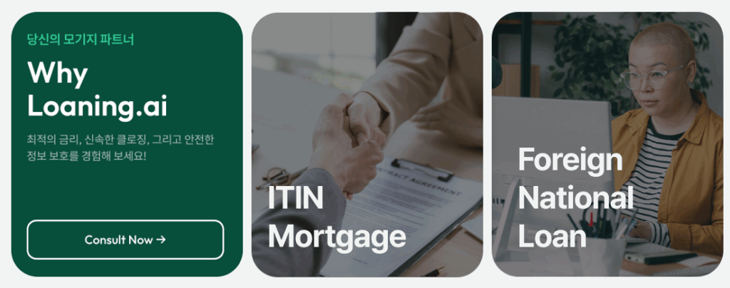 - SSN·ITIN이 없더라도, 외국(예: 한국) 소득·자산을 기준으로 심사하는 외국인 전용 모기지 상품입니다.