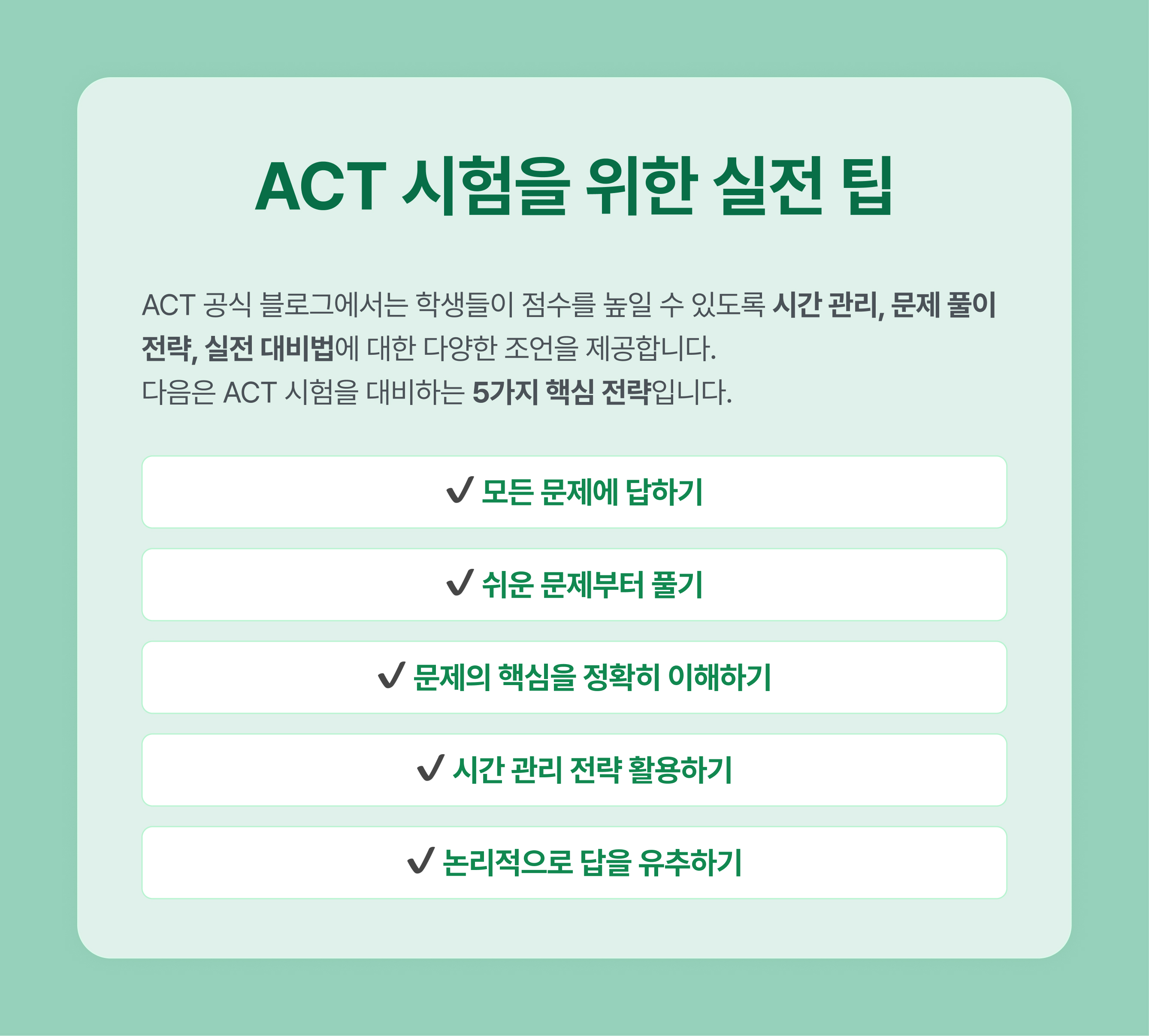 2️⃣ ACT 시험을 위한 실전 팁 & 전략