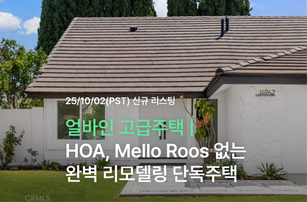 안녕하세요, Loaning.ai입니다! 오늘은 캘리포니아 오렌지카운티의 핵심 입지, 얼바인 고급주택 중에서도 실거주 만족도와 투자 가치를 모두 갖춘 완벽한 리모델링 매물을 소개해 드립니다.이 주택은 HOA, Mello Roos가 전혀 없는 드문 조건을 갖추고...